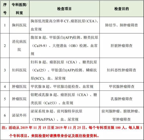 腫瘤篩查項(xiàng)目表