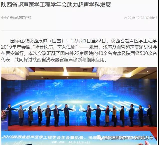 12月21日、22日,在陜西省超聲醫(yī)學(xué)工程學(xué)2019年年會(huì)上,西安國(guó)際醫(yī)學(xué)中心醫(yī)院將攜手空軍軍醫(yī)大學(xué)西京醫(yī)院、唐都醫(yī)院,交大一附院、二附院,陜西省人民醫(yī)院,陜西省腫瘤醫(yī)院等十家大醫(yī)院開展大型公益系列活動(dòng)。