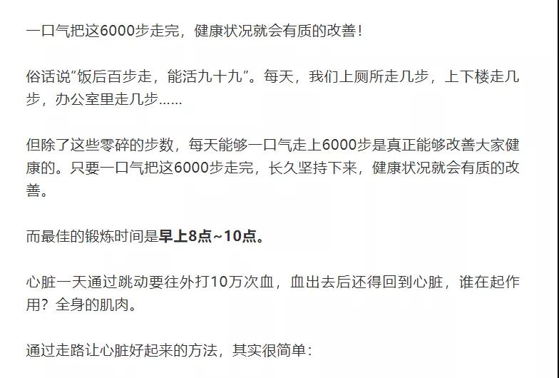 但是不要盲目的“拼微信步數(shù)”,在健康的基礎(chǔ)上,有意識(shí)地加大、加快步伐,將運(yùn)動(dòng)融入生活、增加熱量消耗,讓走路這顆“長(zhǎng)壽藥”發(fā)揮最大效果。