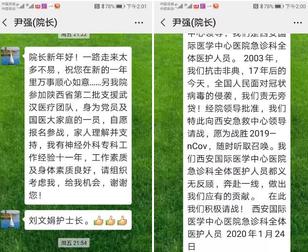 2020年1月24日晚,西安國(guó)際醫(yī)學(xué)中心醫(yī)院在工作群中發(fā)布了,西安市衛(wèi)健委《關(guān)于組派醫(yī)療隊(duì)援助湖北應(yīng)對(duì)新型冠狀病毒感染的肺炎疫情的通知》。