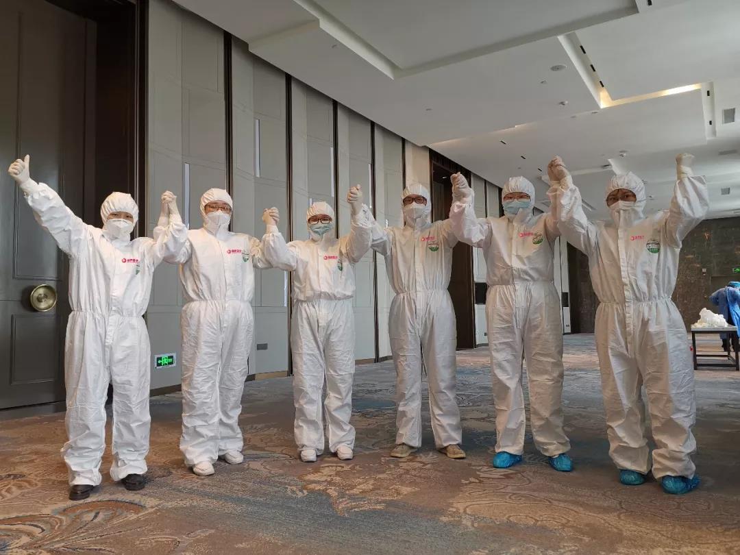 晚上十點(diǎn)多,大家仍然在反復(fù)溫習(xí)筆記,不斷練習(xí)穿脫防護(hù)服。穿防護(hù)服:十五個(gè)左右的步驟;脫防護(hù)服:二十多個(gè)步驟。每一個(gè)重要?jiǎng)幼饕毩?xí)上百次,穿脫幾次后,往往汗流浹背。