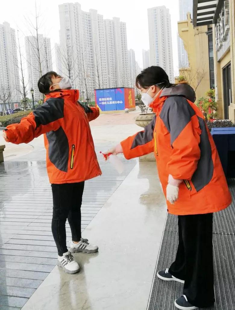 做好一切消殺措施,堅(jiān)決將病毒攔截在門外。駐地門口,姑娘們8小時一班,24小時在崗,做好一線醫(yī)務(wù)人員返回酒店的消毒工作。公共區(qū)域電梯、各樓層門口床頭柜、門把手等每日用84消毒液進(jìn)行擦拭,并制作牙簽按壓電梯等,減少對公共區(qū)域物品的接觸。