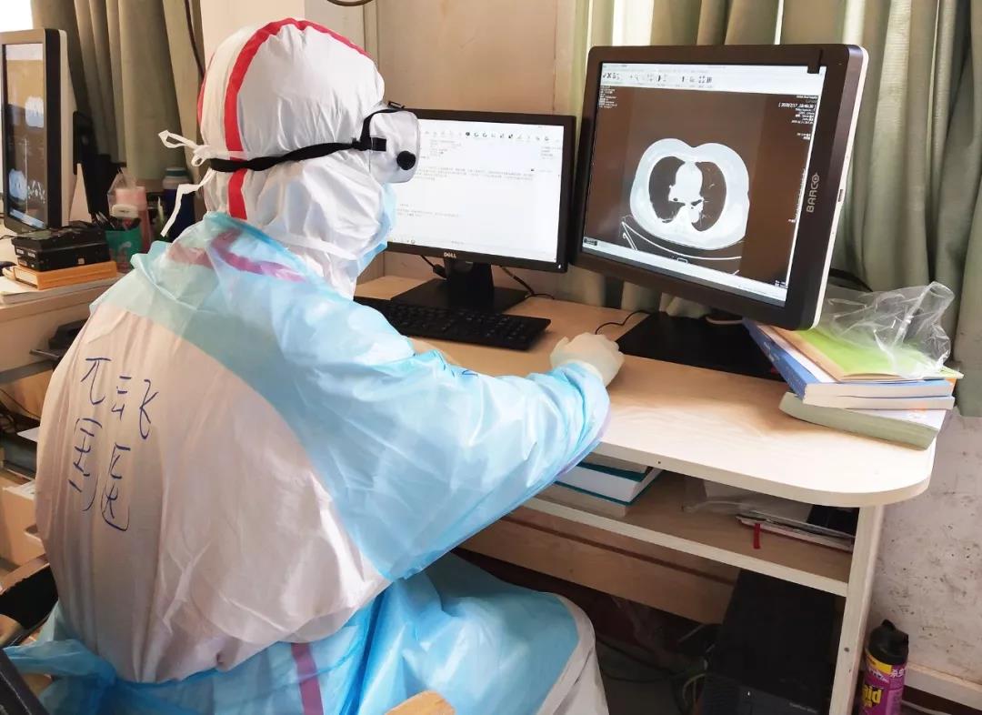 一個班次工作結(jié)束,兀云飛脫下防護服已是大汗淋漓?!皠倎淼臅r候,穿著防護裝備看片速度有些慢,不過經(jīng)過一段時間適應(yīng)后快多了,我多看一個片子,就有一個人多一份希望。”兀云飛說。