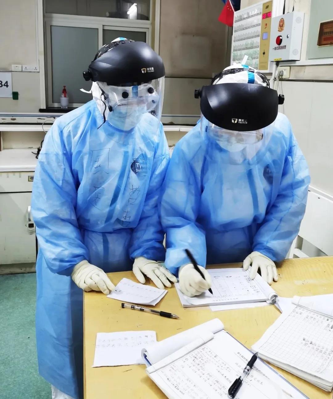 西安國際醫(yī)學(xué)中心醫(yī)院赴武漢醫(yī)療隊的隊員們在進(jìn)入武漢第八醫(yī)院工作后,團(tuán)結(jié)一致,積極進(jìn)取,不怕困難,不怕吃苦。剛開始,史璐護(hù)士長等隊員按照統(tǒng)一安排,負(fù)責(zé)酒店消殺流程制度的制定與落實,隊員生活物品及餐食的發(fā)放,以及消殺工作。她們工作任勞任怨,一絲不茍,在現(xiàn)有條件下為前方戰(zhàn)友提供最大最好的安全保障。之后,根據(jù)工作的需要,她們被分別調(diào)配到各病區(qū)、隔離病房以及督導(dǎo)組。在督導(dǎo)組,她們8小時輪換,24小時在崗,督導(dǎo)隊員們穿脫防護(hù)服,進(jìn)行地面、空氣、物表的消毒,護(hù)目鏡、面屏浸泡消毒擦拭備用,及時反饋當(dāng)天在穿脫過程中存在的問題……