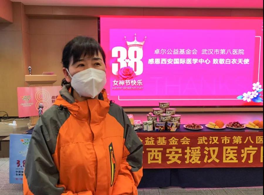 3月8日國(guó)際勞動(dòng)?jì)D女節(jié),武漢市江岸區(qū)副區(qū)長(zhǎng)蔣志耕,江岸區(qū)衛(wèi)健局黨委書(shū)記、局長(zhǎng)童衛(wèi)橋,武漢市第八醫(yī)院黨委書(shū)記唐迎春,卓爾公益基金會(huì)副理事長(zhǎng)方黎等領(lǐng)導(dǎo)前往西安國(guó)際醫(yī)學(xué)中心醫(yī)院赴湖北醫(yī)療隊(duì)駐地,為“抗疫女神”們送上節(jié)日祝福。醫(yī)療隊(duì)隊(duì)長(zhǎng)楊峰、黨支部書(shū)記李斌、專家組成員及隊(duì)員代表等出席。會(huì)議由江岸區(qū)衛(wèi)健局童衛(wèi)橋書(shū)記局長(zhǎng)主持。