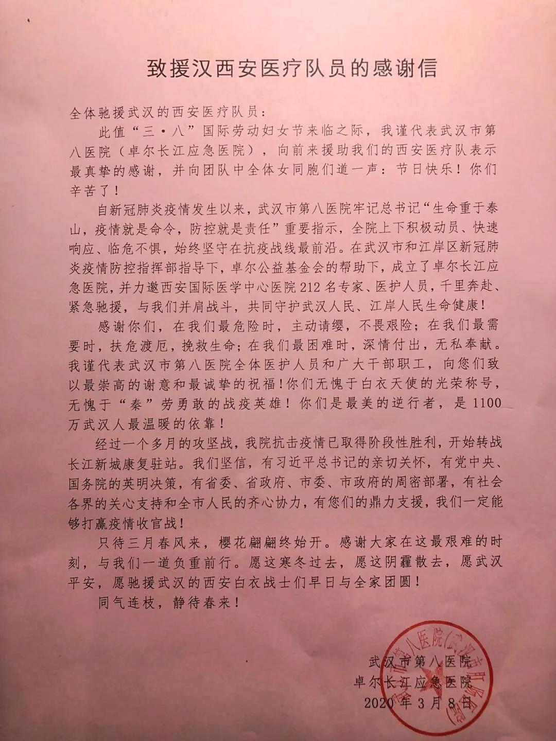 “英姿巾幗秀,輝映半邊天!”武漢市江岸區(qū)蔣志耕副區(qū)長(zhǎng)對(duì)醫(yī)療隊(duì)里的女醫(yī)護(hù)們給予高度評(píng)價(jià):你們是最美逆行者,祝你們節(jié)日快樂(lè)!