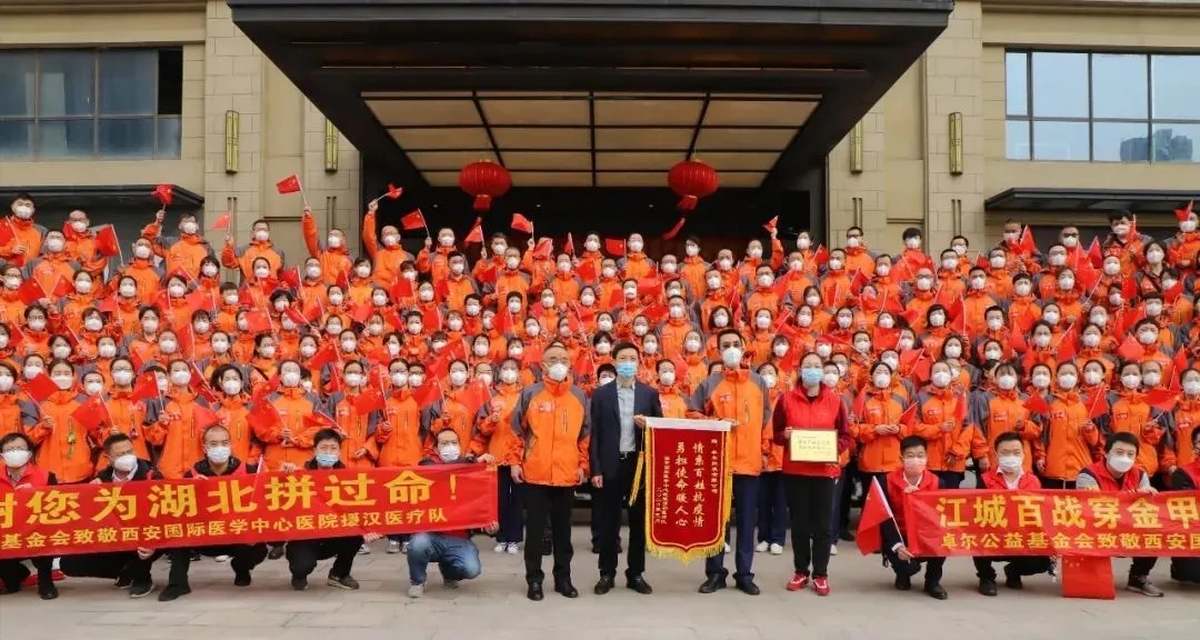 2月3日,在湖北武漢疫情嚴(yán)峻,一床難求的時(shí)刻,應(yīng)卓爾公益基金會(huì)邀請(qǐng),西安援漢醫(yī)療隊(duì)首批212名專家及醫(yī)護(hù)人員抵漢,火線投入卓爾長(zhǎng)江應(yīng)急醫(yī)院(武漢市第八醫(yī)院)的患者救治中,接管2個(gè)重癥病區(qū)、4個(gè)普通病區(qū)。第二批16名專家隨后抵漢增援,共228名白衣戰(zhàn)士經(jīng)過(guò)一個(gè)多月的持續(xù)奮戰(zhàn),累計(jì)收治新冠患者330人,極大緩解武漢市江岸區(qū)患者收治壓力,取得救治工作的重大勝利。診療結(jié)束后,又轉(zhuǎn)戰(zhàn)卓爾康復(fù)驛站,擔(dān)負(fù)500多名康復(fù)人員的診療護(hù)理工作。其間,援漢醫(yī)療隊(duì)派出60人的醫(yī)護(hù)工作團(tuán)隊(duì)馳援卓爾隨州應(yīng)急醫(yī)院,救治患者146名,圓滿完成了艱巨的診療救治任務(wù)。