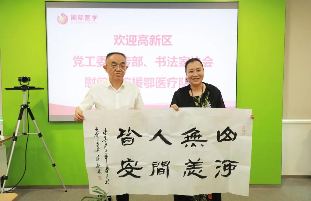 5月12日第109個(gè)國(guó)際護(hù)士節(jié),西安高新區(qū)黨工委宣傳部、書法家協(xié)會(huì)一行14人蒞臨西安國(guó)際醫(yī)學(xué)中心醫(yī)院,以書籍和書法作品慰問(wèn)在疫情期間馳援湖北的抗疫英雄,向他們致以崇高的敬意。醫(yī)院總經(jīng)理王志峰、副院長(zhǎng)楊峰等領(lǐng)導(dǎo)和護(hù)理人員代表參會(huì)。