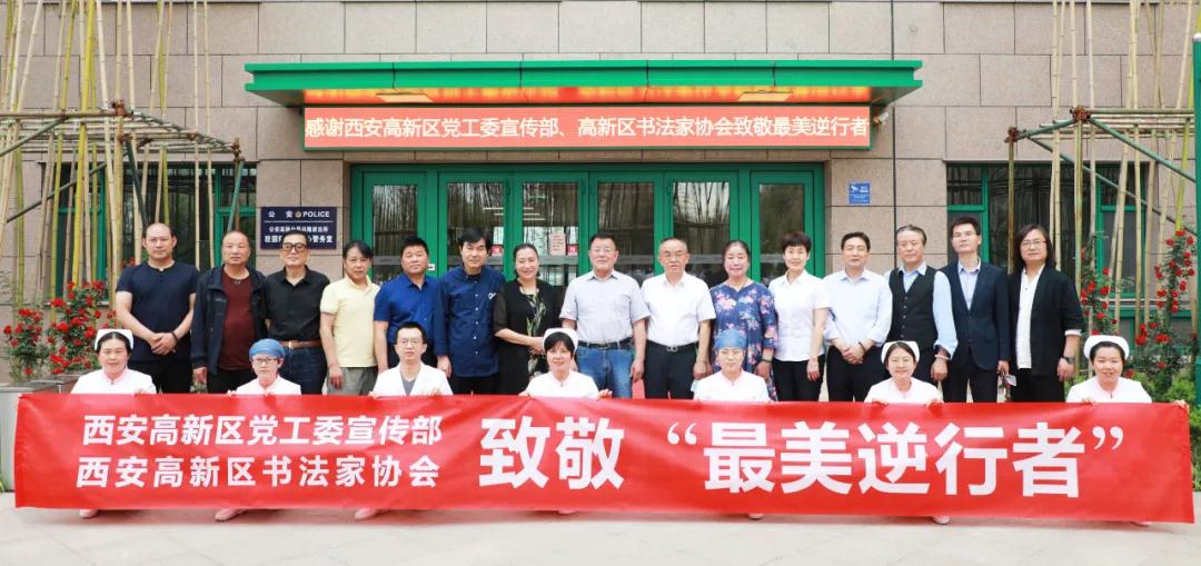陜西省書協(xié)副主席、高新區(qū)書法家協(xié)會(huì)主席李艷秋,陜西省書協(xié)女書法家委員會(huì)委員、高新區(qū)書法家協(xié)會(huì)常務(wù)副主席兼秘書長(zhǎng)曹京梅,高新區(qū)書法家協(xié)會(huì)副主席王強(qiáng)、閆瑞、吳建軍以及書法家劉鵬飛、高瑞成、馮傳金、胡江濤、郭小和、段西漢等前來(lái)慰問(wèn)。陜西省書協(xié)副主席李艷秋高度贊揚(yáng)了我院支援湖北醫(yī)療隊(duì),隊(duì)員們不辱使命、載譽(yù)而歸,以實(shí)際行動(dòng)詮釋了白衣天使的初心,是新時(shí)代最可愛(ài)的人?!搬t(yī)者仁心”“人間大愛(ài)、可歌可頌”……一幅幅蒼勁有力的書法作品致敬白衣戰(zhàn)士,贊美之情躍然紙上。