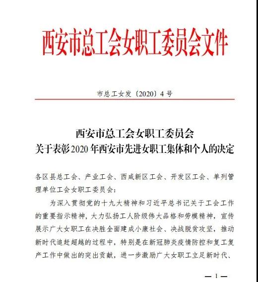 西安市總工會(huì)在《關(guān)于表彰2020年西安市先進(jìn)女職工集體和先進(jìn)個(gè)人的決定》指出,在抗擊新冠肺炎疫情的關(guān)鍵時(shí)刻,薛妍副院長主動(dòng)請(qǐng)纓馳援武漢、隨州兩地。在戰(zhàn)斗中時(shí)刻以高度的責(zé)任意識(shí)和擔(dān)當(dāng)精神做好每項(xiàng)工作。在武漢第八醫(yī)院,她參與專家組工作,規(guī)劃救治重點(diǎn)及工作流程,制定診療方案,保證各項(xiàng)工作順利展開。在隨州市中心醫(yī)院,她負(fù)責(zé)醫(yī)療隊(duì)的后勤保障以及隊(duì)員們的衣食住行,被隨州市委授予“抗擊新冠肺炎疫情先進(jìn)個(gè)人”榮譽(yù)稱號(hào)。