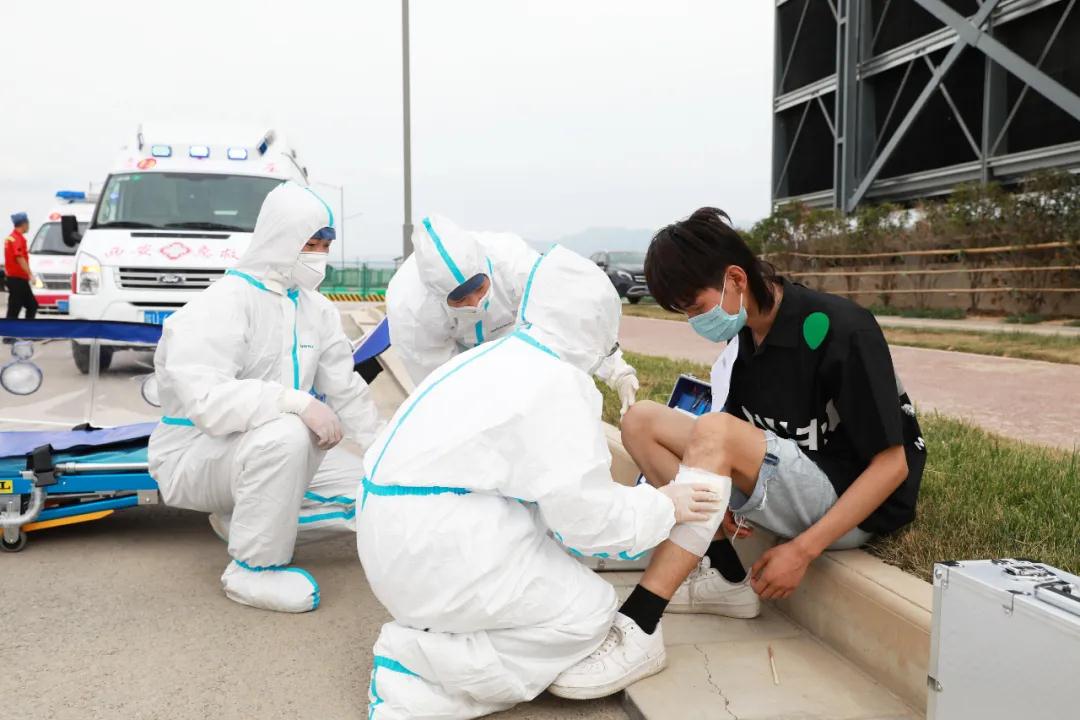 隨后院長尹強(qiáng)通過對講機(jī)發(fā)出演練開始指令。在觀摩組的注視下,一支由22輛急救車及20組醫(yī)、護(hù)、工人員組成的救援隊立刻趕赴模擬的重大交通事故現(xiàn)場進(jìn)行應(yīng)急救援。
