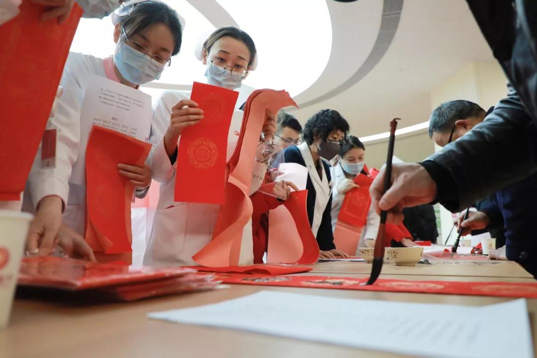 室外寒冬隆隆,室內(nèi)暖意融融,門診大廳人潮涌動。集五福,來西安國際醫(yī)學(xué)中心醫(yī)院!火紅的“?!弊譅I造出喜慶祥和的氛圍,活動邀請了中國榜書家協(xié)會副主席兼中國社會藝術(shù)委員會副會長、中國榜書家協(xié)會陜西省分會主席雷婉萍及陜西省書法家協(xié)會、西安市書法家協(xié)會的名家和院內(nèi)書法愛好者們親筆書寫春聯(lián)。一幅幅金鉤鐵劃的春聯(lián)飽含真摯祝福,一個個飄逸靈動的漢字躍然紙上。除了傳統(tǒng)春聯(lián)還有新年新意,宣傳策劃部征集的原創(chuàng)春聯(lián)內(nèi)容積極向上,以新春祝福、歌頌西安國際醫(yī)學(xué)中心醫(yī)院為主題,溫暖的祝福送大家,受到一致好評。