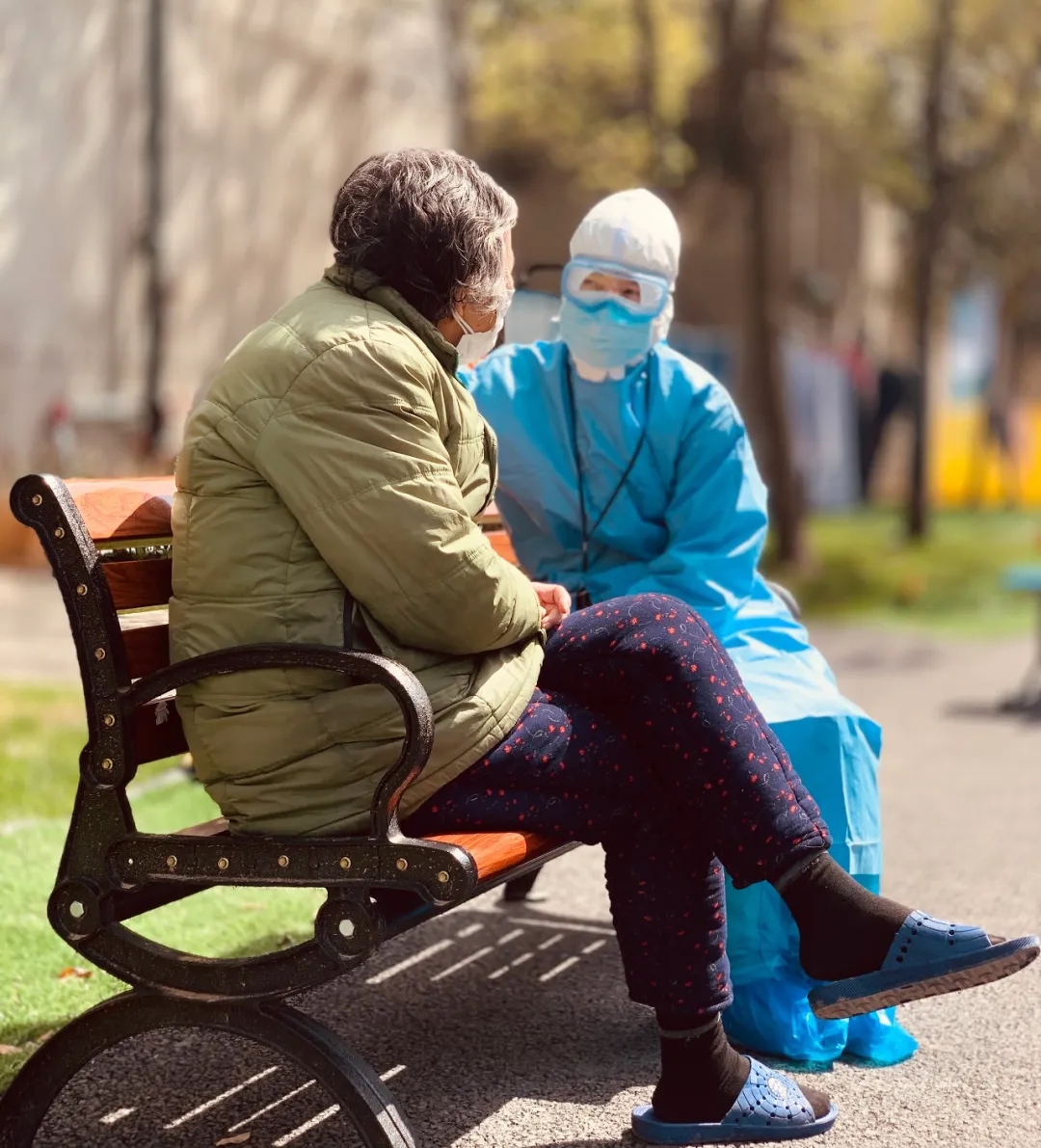 8艙有一位80多歲的老奶奶,中午出來(lái)遛彎時(shí)看到了醫(yī)療隊(duì)護(hù)士萬(wàn)珍妮,主動(dòng)過(guò)來(lái)攀談?!澳闶顷兾鱽?lái)的?我看你衣服上寫(xiě)著西安幾個(gè)字了?!薄笆前?,奶奶,我們是西安國(guó)際醫(yī)學(xué)中心醫(yī)院來(lái)武漢支援的?!比f(wàn)珍妮通過(guò)和奶奶聊天得知,奶奶的父親以前在寶雞工作過(guò)很長(zhǎng)時(shí)間?!拔乙菜惆雮€(gè)陜西人了。沒(méi)想到在這里還能見(jiàn)到“老鄉(xiāng)”!感謝你們!”奶奶感覺(jué)很親切,和萬(wàn)珍妮話起了“家?!?。