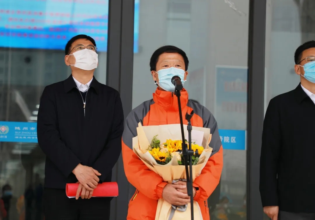 陳瑞峰書記代表隨州市委、市政府,代表258萬隨州人民,向醫(yī)療隊全體隊員表示最衷心的感謝和最崇高的敬意!他說,危難之時見真情,在隨州疫情防控最吃勁的關(guān)鍵階段,西安國際醫(yī)學(xué)中心醫(yī)院援隨醫(yī)療隊義無反顧的堅定逆行,同隨州人民風(fēng)雨同舟,日夜鏖戰(zhàn)在疫情防控第一線,托起了無數(shù)生命的希望,傳遞著人性光輝和社會大愛,充分展現(xiàn)了“敬佑生命、救死扶傷、甘于奉獻、大愛無疆”的醫(yī)者仁心,你們是最美的天使,是真正的英雄,是新時代最可愛的人,為保障隨州人民生命安全和身體健康作出了重要貢獻。經(jīng)過艱苦努力,隨州疫情防控形勢發(fā)生積極向好變化,但不獲全勝決不輕言成功。我們堅信,有以習(xí)近平同志為核心的黨中央堅強領(lǐng)導(dǎo),有中國特色社會主義制度優(yōu)勢,有卓爾控股集團和西安國際醫(yī)學(xué)中心醫(yī)院的大力支持,有全市人民眾志成城、同舟共濟,一定能夠不斷鞏固成果、擴大戰(zhàn)果,奪取疫情防控人民戰(zhàn)爭、總體戰(zhàn)、阻擊戰(zhàn)的全勝完勝,一定會迎來一個繁花似錦的春天。誠摯地邀請大家?;仉S州,隨州永遠是你們的家,隨州人民永遠把你們當(dāng)恩人、當(dāng)親人!