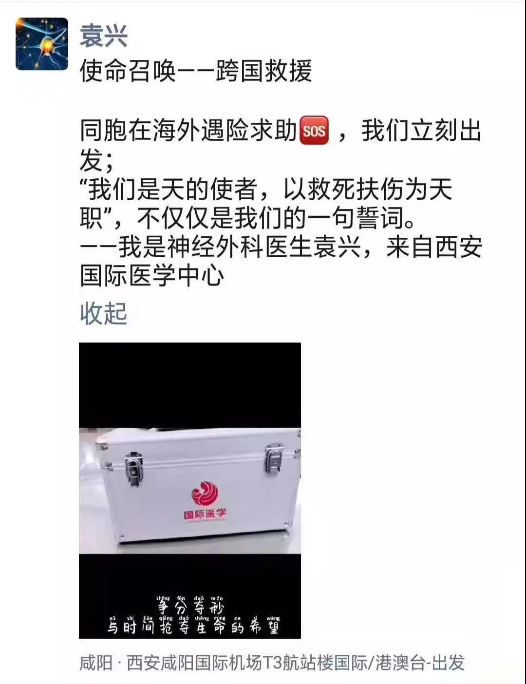 “這是中國醫(yī)生義不容辭的責(zé)任!”西安國際醫(yī)學(xué)中心醫(yī)院腦科醫(yī)院神經(jīng)外科主任賀世明介紹,12月2日,剛下手術(shù)的賀世明主任接到了求助電話,立即匯報上級領(lǐng)導(dǎo),尹強院長當(dāng)機立斷,派出袁興醫(yī)生星夜兼程,帶著急救藥品設(shè)備奔赴泰國。