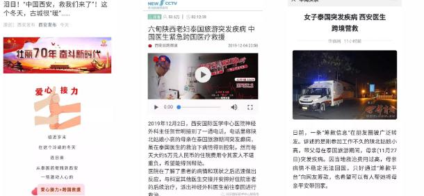 12月4日,西安國際醫(yī)學(xué)中心醫(yī)院醫(yī)護人員在西安咸陽國際機場的特殊通道嚴(yán)陣以待,中國駐泰國大使館多方協(xié)調(diào),春秋航空總部提供幫助,西安市人民政府外事辦公室啟動安全領(lǐng)事保護機制,西安咸陽機場海關(guān)通力協(xié)調(diào)、盡可能壓縮通關(guān)時長,西安咸陽國際機場運行控制協(xié)調(diào)中心鼎力支持,從泰國到西安,直到西安國際醫(yī)學(xué)中心醫(yī)院的救護車停在停機坪上……陜西省多家媒體多方報道、中央電視臺二套播報點贊,跨國救援的故事溫暖了西安城。