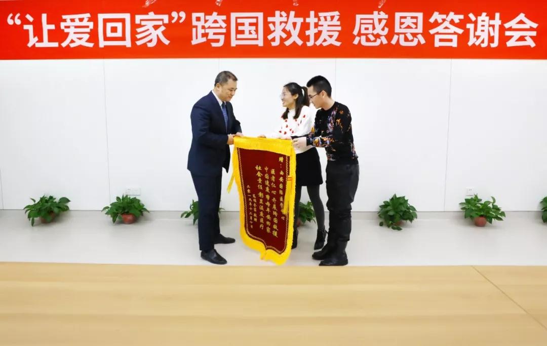 高瑞及家人對幫助過她的十余家單位敬送錦旗。代表西安國際醫(yī)學(xué)中心醫(yī)院接受錦旗的醫(yī)教部主任許鵬表示,感恩偉大的時代,感謝大家對西安國際醫(yī)學(xué)中心醫(yī)院的信任。