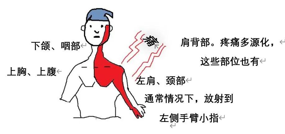 部分患者可伴有左肩、左側前臂內(nèi)側、背部、上腹部、咽喉、牙齒的放射痛。