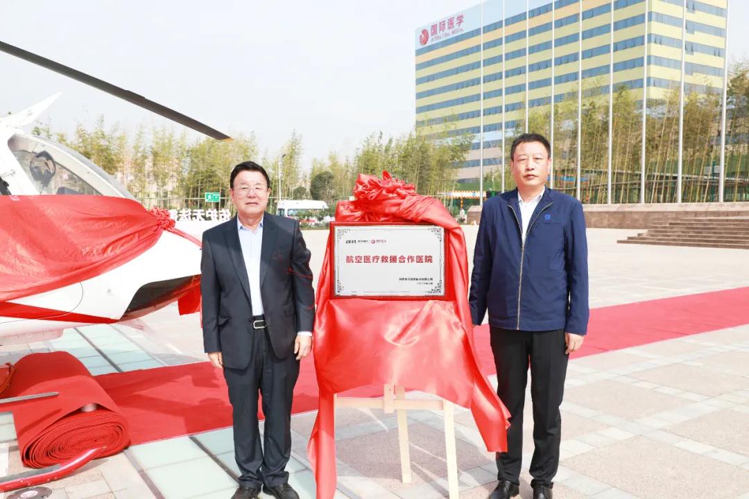 王志峰總經(jīng)理、郝幫華書(shū)記為“航空醫(yī)療救援”項(xiàng)目正式啟動(dòng)進(jìn)行合作簽約并揭牌。