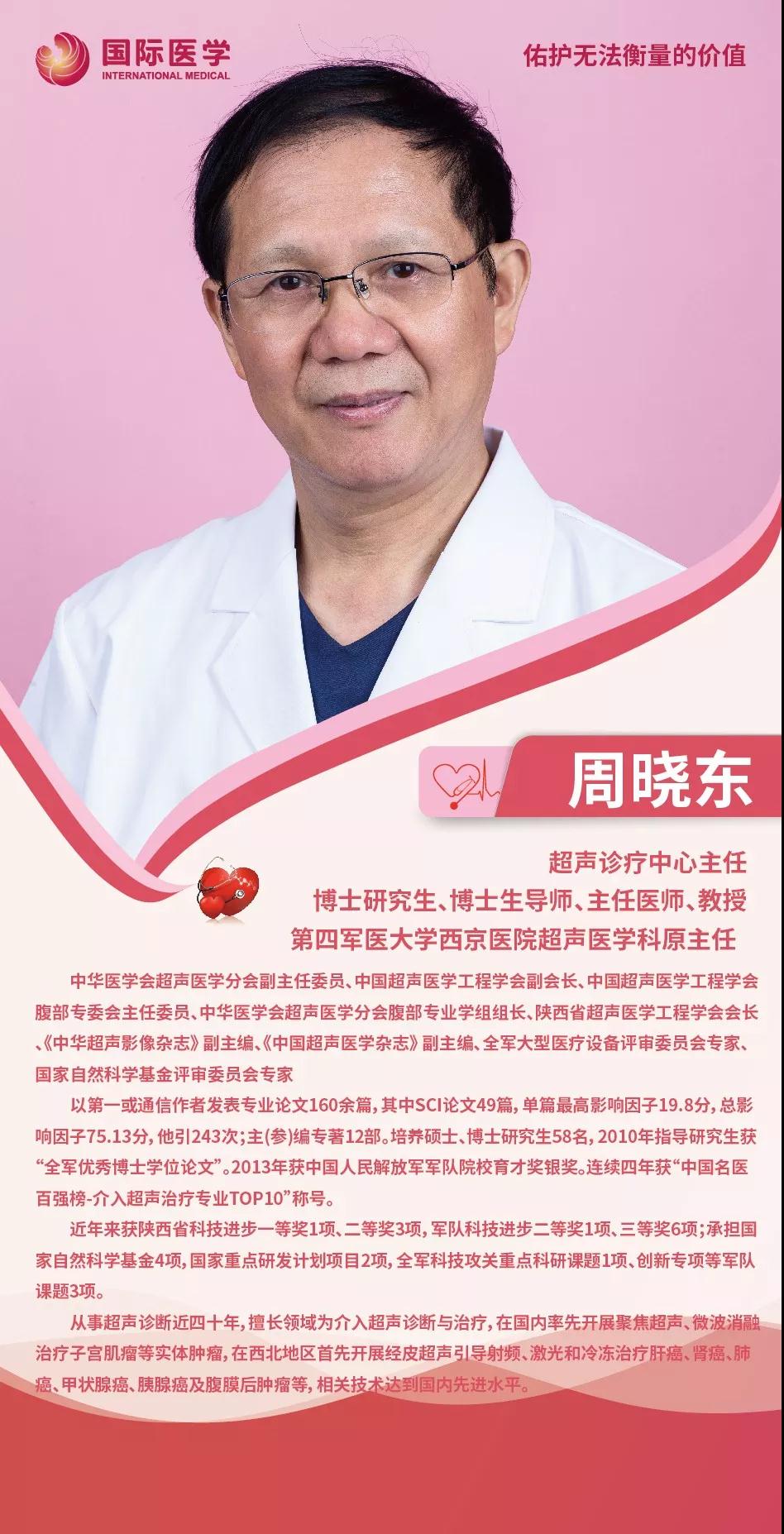 周曉東,中華醫(yī)學(xué)會超聲醫(yī)學(xué)分會副主任委員、中國超聲醫(yī)學(xué)工程學(xué)會副會長、陜西省超聲醫(yī)學(xué)工程學(xué)會會長、第四軍醫(yī)大學(xué)西京醫(yī)院超聲醫(yī)學(xué)科原主任、現(xiàn)任西安國際醫(yī)學(xué)中心醫(yī)院超聲診療中心主任。