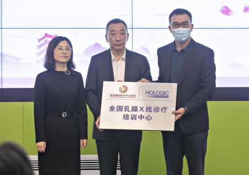 會議第一項,豪洛捷公司為西安國際醫(yī)學中心醫(yī)院影像診療中心進行了授牌,宣布影像診療中心成為全國乳腺X線診療培訓中心,將為培養(yǎng)乳腺X線診療人員建立開放學習的平臺。
