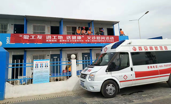2017年7月8日,由國際醫(yī)學(xué)旗下西安高新醫(yī)院、高新區(qū)藍博社區(qū)衛(wèi)生服務(wù)中心聯(lián)合中建三局組織的“愛工友、進工地、送健康”義診慰問活動在西安國際醫(yī)學(xué)中心項目工地舉辦,為現(xiàn)場施工工友們送上關(guān)愛和祝福。