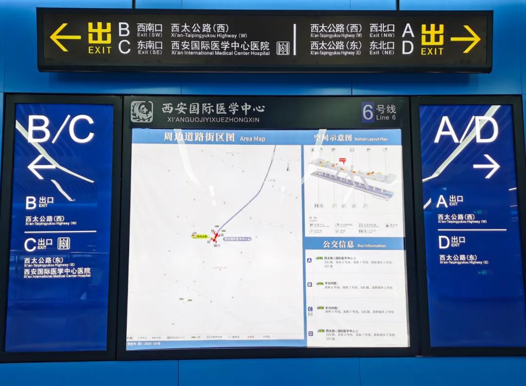 正式開通后,6號線西安國際醫(yī)學中心醫(yī)院站將開放4個地面出入口。主要分布在緯三十一和西太路口交匯處。C口離西安國際醫(yī)學中心醫(yī)院2號門最近,僅20米。