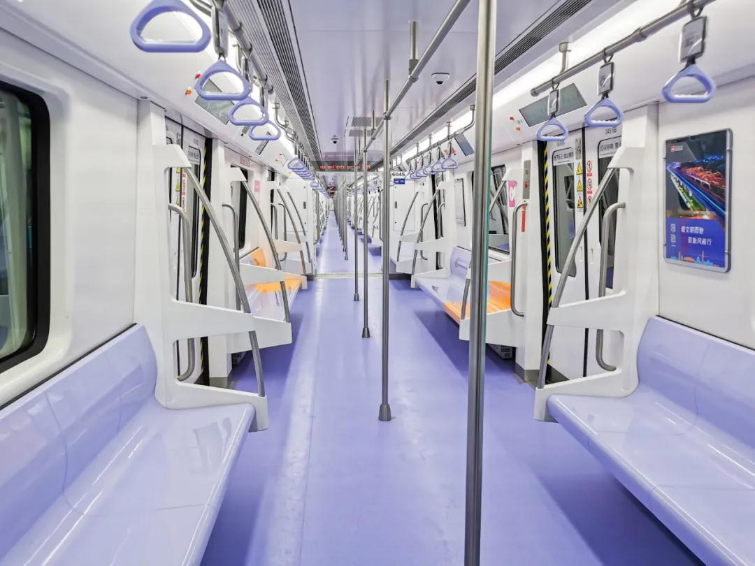 28日上午,小編乘坐開往西安國際醫(yī)學中心方向的6號線地鐵。該車車身腰線為一抹清新“星空藍”,車內(nèi)裝飾為點點淡雅“香芋紫”;車門上方的LCD顯示屏,既有整體線路、運行狀態(tài)等基本信息,也有列車抵達下一站的預(yù)計時間,更有站臺層扶梯、直梯與洗手間的位置等便民信息;橙黃色的愛心座椅自帶加熱功能,科技感十足,有顏值,更便捷!