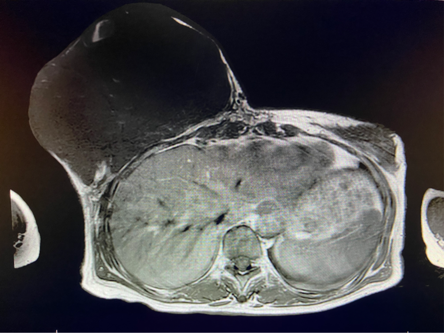 該患者右乳巨大腫物術(shù)前初步考慮乳腺葉狀腫瘤可能,因腫瘤太大,幾乎遍及整個(gè)右側(cè)乳房,為保證“無瘤原則”,術(shù)中切除范圍位置未知,極有可能出現(xiàn)皮瓣缺損。于是,經(jīng)過和整形醫(yī)院郭樹忠院長(zhǎng)、整形外科王愛武主任的討論,提供了兩種手術(shù)方式,一是創(chuàng)面修復(fù)(植皮或轉(zhuǎn)移皮瓣修復(fù)創(chuàng)面),二是乳房再造,與患者及家屬溝通后,決定先解決腫物,3年病情不再復(fù)發(fā)后,可以再考慮乳房重建。