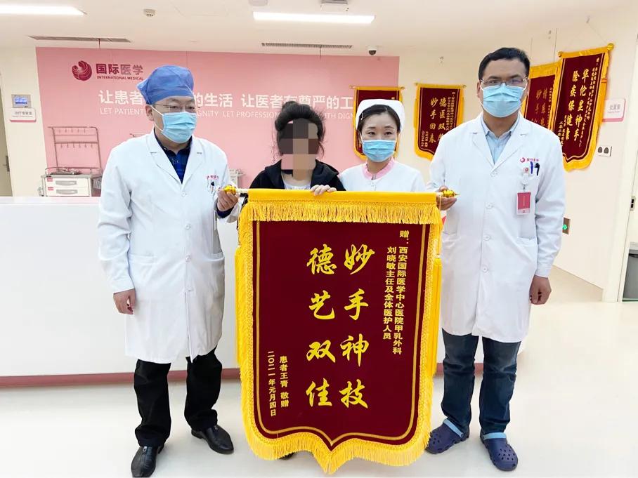 王女士終于可以暢快呼吸、正常走路了,不用再擔(dān)心壓在胸前令人窒息的腫瘤和別人異樣的眼光。近日,王女士在西安國際醫(yī)學(xué)中心醫(yī)院甲乳外科接受了右乳全乳切除術(shù) 胸壁皮瓣成形術(shù)或植皮術(shù),切除了胸口重達(dá)5斤的腫瘤。