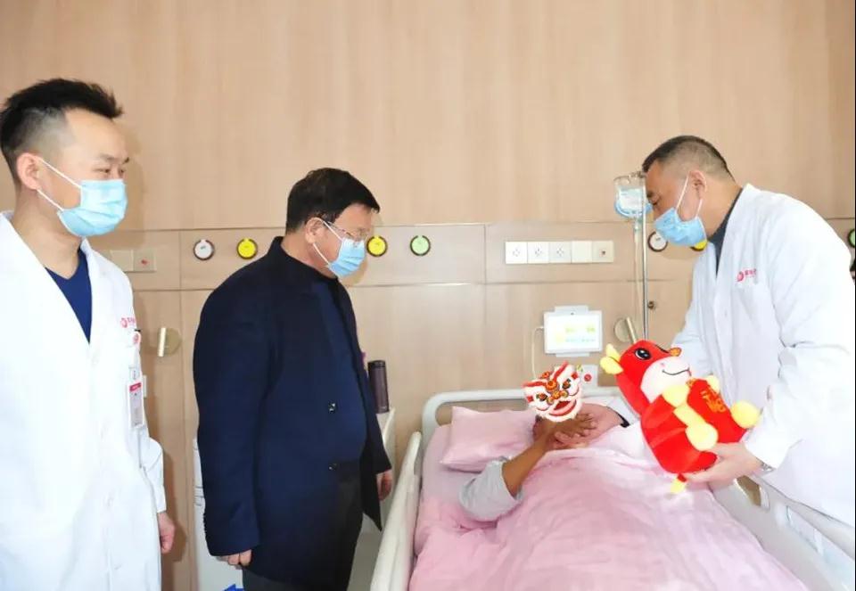 2月12日農(nóng)歷大年初一,國際醫(yī)學(xué)董事長史今、總裁劉瑞軒等領(lǐng)導(dǎo)一行來到西安國際醫(yī)學(xué)中心醫(yī)院,看望堅守在一線崗位的醫(yī)護人員及住院患者,給大家拜年并送上新春祝福。院長尹強、總經(jīng)理王志峰等陪同慰問。