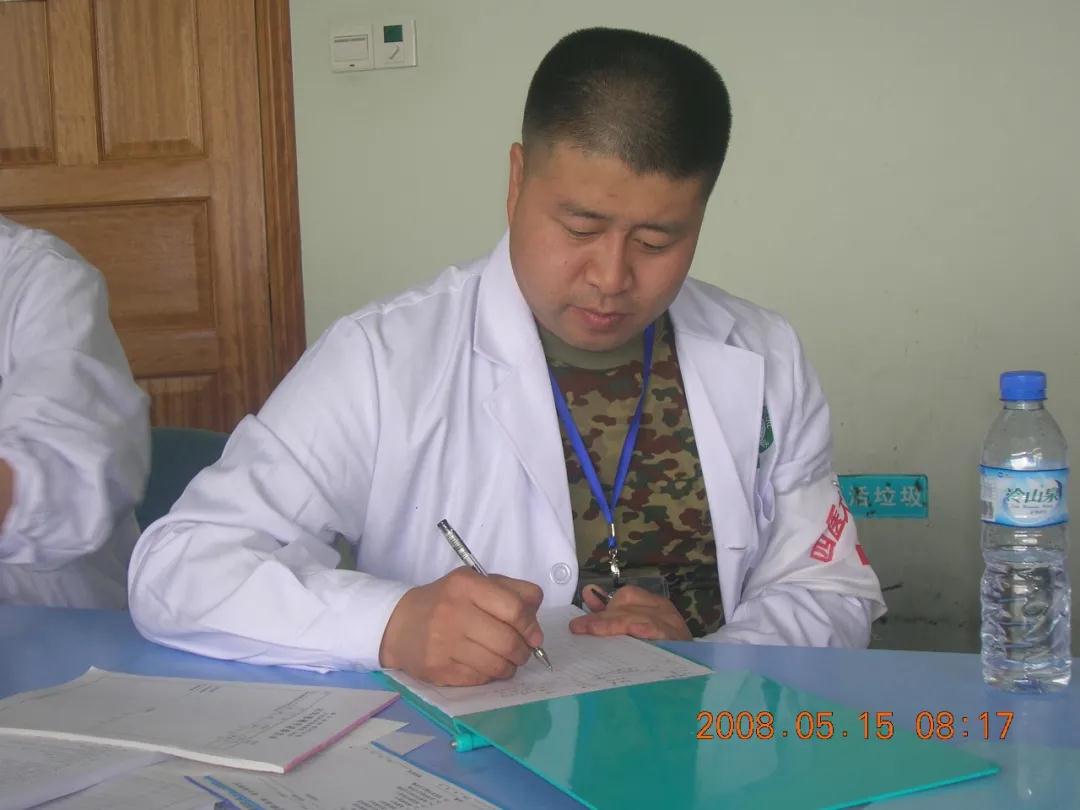 14時28分,山河破碎,天崩地裂,西安有強烈震感。李占亭撥開向室外沖的人潮,逆行進入透析室,在天旋地轉(zhuǎn)中幫助尚在透析的患者下機。安置好患者,他才想起在唐都醫(yī)院家屬院的妻子和不滿2歲的幼女。“若有戰(zhàn),召必至”,當(dāng)天晚上,李占亭響應(yīng)號召,收拾行囊準(zhǔn)備出發(fā)。急救包、迷彩服、膠鞋、手電筒、巧克力、壓縮餅干、礦泉水、紙巾是他的裝備。沒有人知道他將面臨怎樣的危險與挑戰(zhàn)。