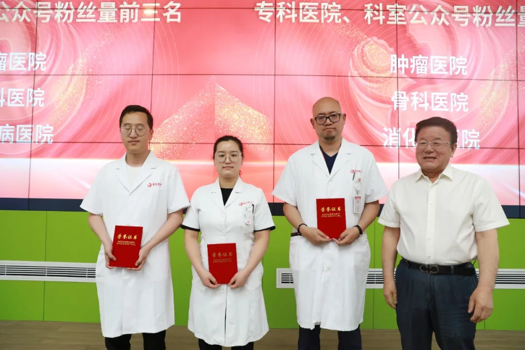 王志峰總經(jīng)理、張斌副院長(zhǎng)分別為受到表彰的先進(jìn)集體與個(gè)人頒發(fā)榮譽(yù)證書。