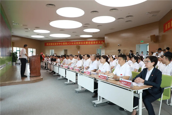 5月27日,西安國際醫(yī)學(xué)中心醫(yī)院舉行JCI認(rèn)證授牌儀式暨總結(jié)表彰大會。聯(lián)合委員會國際部總裁兼首席執(zhí)行官PaulaWilson ,聯(lián)合委員會國際部中國區(qū)主任、JCI評審(北京)有限公司副總經(jīng)理任暉,聯(lián)合委員會國際部JCI認(rèn)證組組長孔雅雀,華潤JCI研究院執(zhí)行院長酈忠,西安國際醫(yī)學(xué)投資股份有限公司總裁劉瑞軒、副董事長王愛萍、副總裁孫文國、副總裁王杲、孫義寬,西安國際醫(yī)學(xué)中心醫(yī)院院長尹強(qiáng)、總經(jīng)理王志峰等領(lǐng)導(dǎo),各??漆t(yī)院院長、主任、護(hù)士長以及職工代表參加。