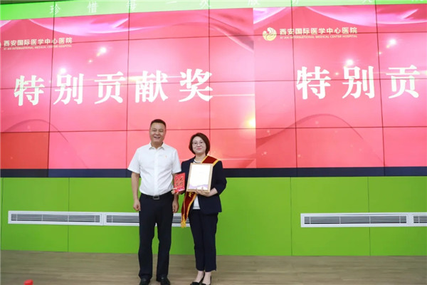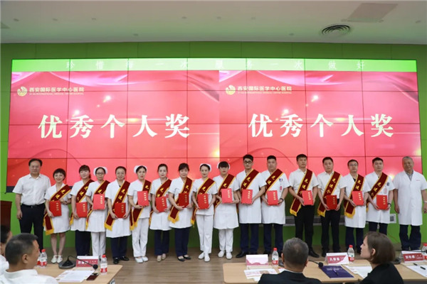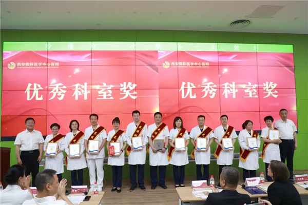國際醫(yī)學(xué)集團(tuán)領(lǐng)導(dǎo)、西安國際醫(yī)學(xué)中心醫(yī)院領(lǐng)導(dǎo)分別為特別貢獻(xiàn)獎、優(yōu)秀部門獎、優(yōu)秀科室獎、優(yōu)秀個人獎的獲獎集體及個人頒獎。