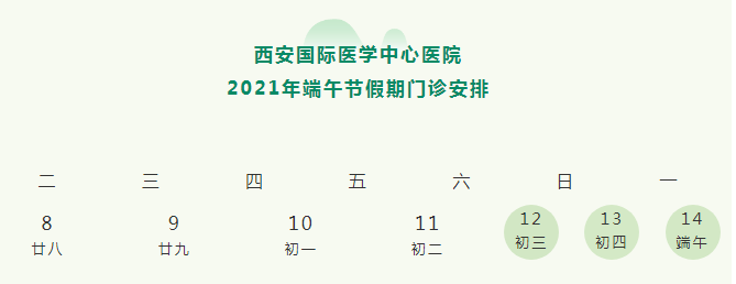 2021年端午節(jié)假期門診安排: