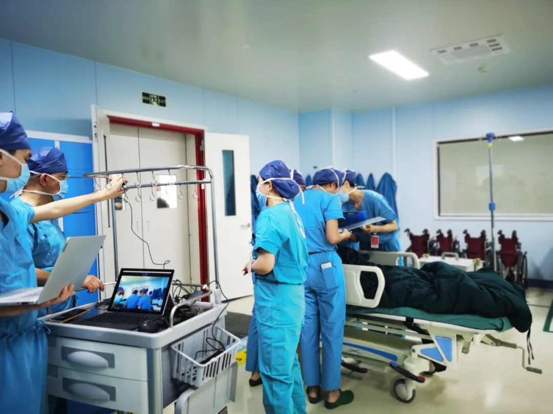 在神經(jīng)內(nèi)科病區(qū)住院的李爺爺突然發(fā)生心臟驟停,值班護(hù)士立即進(jìn)行心肺復(fù)蘇并呼叫消控中心請求啟動999急救。短短三分鐘內(nèi),急救小組攜帶藥品及器械趕來。凌晨三點(diǎn),在醫(yī)護(hù)人員的全力搶救下,70歲的李爺爺終于恢復(fù)自主呼吸。