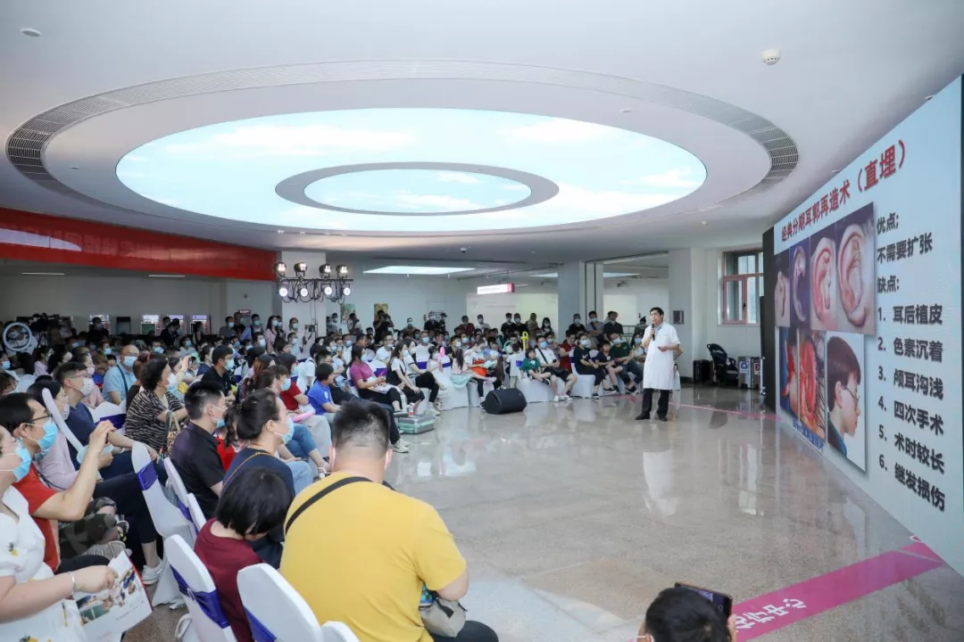 活動(dòng)開始,大屏幕首先呈現(xiàn)出來自全國各地“小耳寶寶”的端午祝福,孩子們的天真笑臉,美好愿望令人動(dòng)容。隨后西安國際醫(yī)學(xué)中心醫(yī)院整形醫(yī)院院長——郭樹忠教授,為數(shù)百個(gè)“小耳”家庭,詳細(xì)講解了“小耳畸形”疾病的相關(guān)知識(shí),客觀列舉了各種“耳再造”手術(shù)方法優(yōu)缺點(diǎn),力求讓患有“小耳”疾病的孩子及其家庭,對(duì)“疾病”及治療方式有更加全面系統(tǒng)的了解,也為到達(dá)最佳手術(shù)年齡,即將手術(shù)的“小耳”孩子們,在家庭護(hù)理環(huán)節(jié)、治療選擇環(huán)節(jié)等,提供清晰準(zhǔn)確的預(yù)判建議。