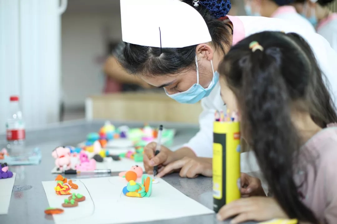 護(hù)士阿姨教“小耳寶寶”制作彩泥