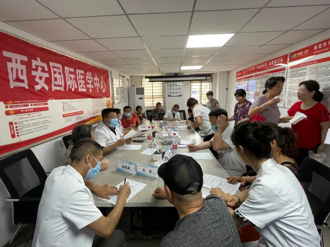 7月4日,由西安國際醫(yī)學(xué)中心醫(yī)院心臟病醫(yī)院心內(nèi)科二病區(qū)發(fā)起的“不忘初心使命 服務(wù)百姓健康”義診活動在中鐵繽紛新城社舉行區(qū)。義診團(tuán)隊(duì)來自心內(nèi)科二病區(qū)主任曾廣偉、腎臟內(nèi)科主任李占亭、內(nèi)分泌科副主任任麗君、消化外科一病區(qū)王學(xué)智主任,骨關(guān)節(jié)科兀飛主治醫(yī)師、超聲診療中心宋雯清醫(yī)師等科室的專家,為廣大群眾免費(fèi)提供:心臟彩超、心電圖、測量血壓、血糖、指脈氧等檢查項(xiàng)目,做到早發(fā)現(xiàn)、早治療。