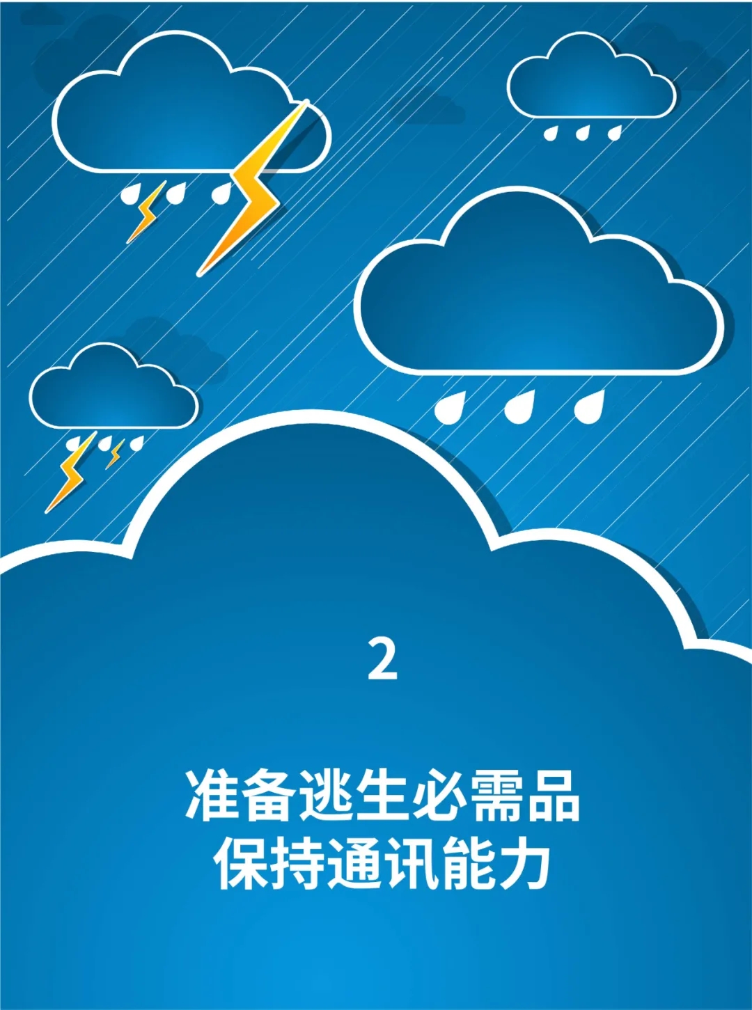 地鐵站、地下停車場、地下通道、下坡、下沉式立交橋下等低洼地段以及有橋梁、有漩渦的地方很危險。遠離老舊建筑、電線桿、廣告牌、路燈。遠離高壓線、高壓電塔、變電器,電閘、配電箱等電力設(shè)施及有供電危險標志的一切物品。