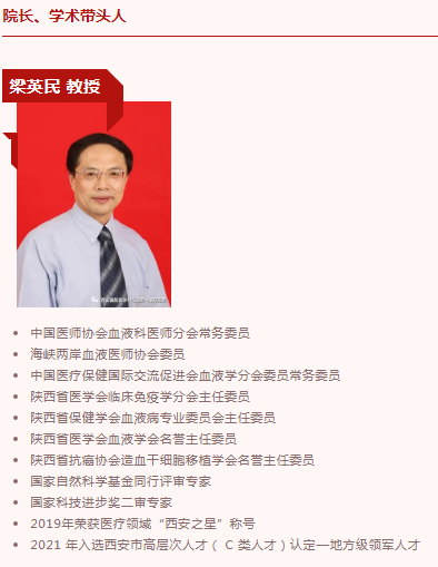 西安國際醫(yī)學(xué)中心醫(yī)院血液病院,成立于2019年,是一家集醫(yī)療、教學(xué)、科研為一體的綜合性??漆t(yī)院,擁有達(dá)到國家標(biāo)準(zhǔn)的外周造血干細(xì)胞/骨髓移植醫(yī)學(xué)中心。骨髓移植中心設(shè)有24張百級(jí)凈化層流倉、移植相關(guān)的醫(yī)療設(shè)備、病毒檢測(cè)技術(shù)及移植患者病情24小時(shí)監(jiān)測(cè)系統(tǒng)。