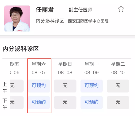 進入預(yù)約掛號后,點擊選擇其他門診—內(nèi)分泌科診區(qū)—任麗君—選擇預(yù)約時間—填寫流行病學(xué)史調(diào)查表,完成預(yù)約。