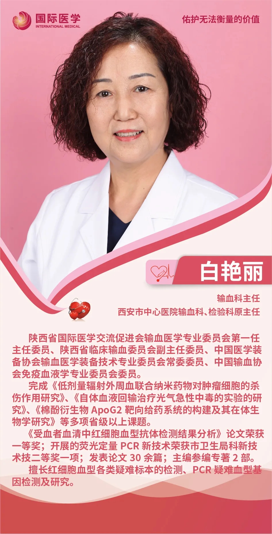 她就是西安國際醫(yī)學中心醫(yī)院輸血科主任——白艷麗。