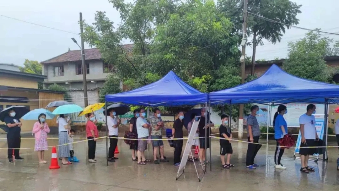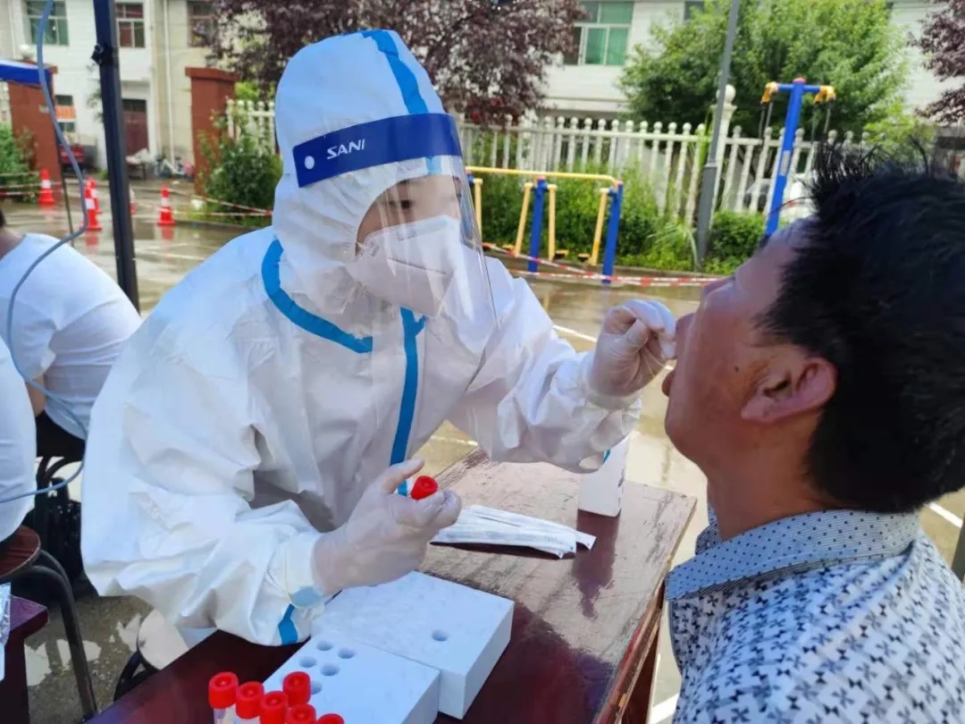 風(fēng)雨交加的社區(qū)中,一幕幕溫情畫(huà)面也在上演。在五星街道北張堡村,郭小娟護(hù)士正在給五歲的小女孩做核酸檢測(cè),做完后,小女孩的一聲:“謝謝阿姨!”讓她紅了眼眶。原來(lái),這周她本要陪孩子好好過(guò)個(gè)周末,但周五接到集結(jié)通知,她毫不猶豫報(bào)了名,只好將三歲半的孩子交給父母照顧。“昨晚回家已經(jīng)十點(diǎn)了,孩子還在等我,問(wèn)我熱不熱。雖然沒(méi)能在家陪他,但是能在核酸檢測(cè)點(diǎn)守護(hù)大家的健康,我覺(jué)得很自豪?!惫【暾f(shuō)。