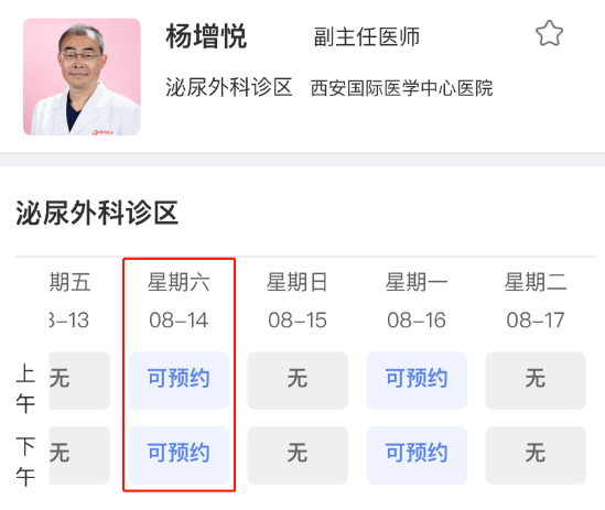 進(jìn)入預(yù)約掛號(hào)后,點(diǎn)擊選擇其他門(mén)診—泌尿外科診區(qū)—楊增悅—選擇預(yù)約時(shí)間—填寫(xiě)流行病學(xué)史調(diào)查表,完成預(yù)約。