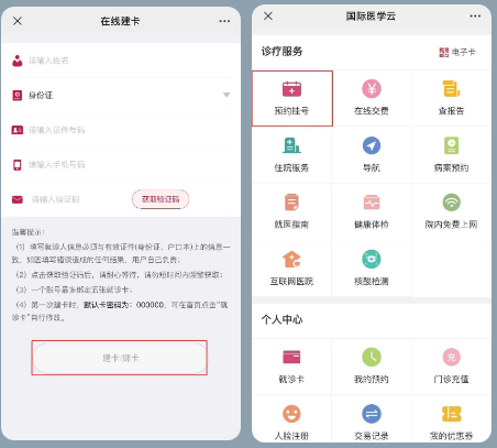 3、輸入個人信息完成就診卡綁定。綁卡后,點擊【預約掛號】