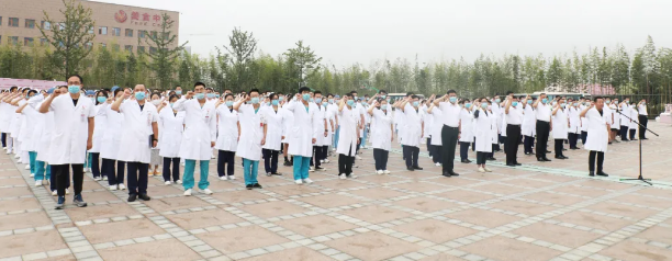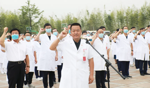 最后,劉延彤院長助理帶領全體新入職員工舉起右手,莊嚴宣誓,鏗鏘有力的誓言在萬人廣場久久回蕩。