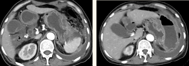一籌莫展的她終于在病友的介紹下,來到西安國際醫(yī)學(xué)中心醫(yī)院找到蔡磊主任。經(jīng)過詢問病史,查體等,蔡磊主任建議口服索坦治療。3個(gè)月后,李阿姨復(fù)查CT提示胃間質(zhì)瘤較前明顯縮小,大小約10.4cm?6cm。但仍存在消化道出血,營養(yǎng)狀況差,全身無力,骨髓抑制。蔡磊主任隨即將患者收治入院。