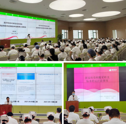 當日下午,感控部、檢驗中心對新冠肺炎感染防控及核酸采樣技術(shù)進行了全員培訓,詳細解讀了《醫(yī)療機構(gòu)內(nèi)新型冠狀病毒感染防控與控制技術(shù)指南(第三版)》、等級醫(yī)院評審手衛(wèi)生指標要求、核酸采樣技術(shù)及標本轉(zhuǎn)運注意事項。